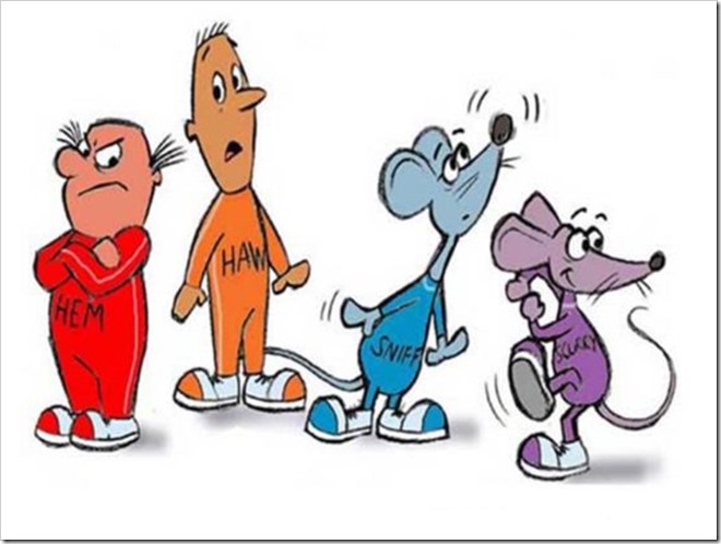 ลองนำเรื่องราวของ Hem, Haw, Sniff และ Scurry ไปแบ่งปันให้ทีมของคุณฟัง พวกเขาอาจจะเริ่มเปลี่ยนทัศนคติ และมองปัญหาในมุมที่ต่างออกไป ซึ่งจะสร้างประโยชน์ให้กับองค์กร