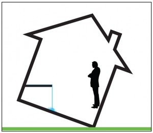 But from inside the shack, I perceive the overall interior space as level, so water (or a ball) appears to be running uphill.